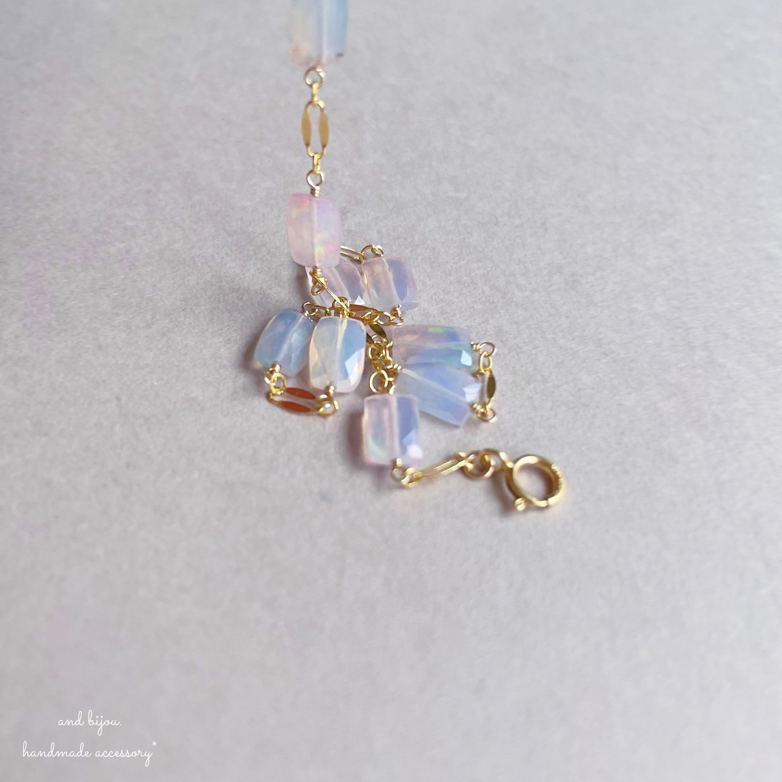and bijou.では、宝石質やAAA~AA として販売されている石を使用しておりますが、天然が故に欠けやヒビ、内包物が見受けられるものもございます。だからこそ輝き、また 虹が覗く天然石もございます。大きさ、形や色にも1つ1つにございます。天然石の魅力としてご理解お願いいたします。