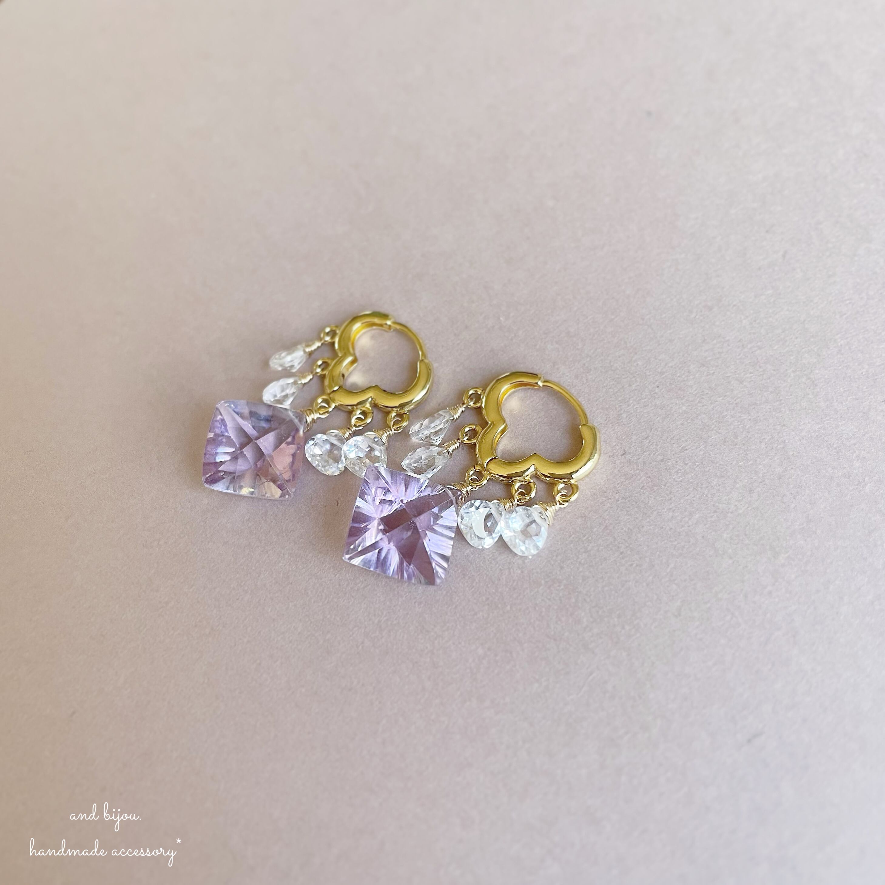 18kgp ラベンダーアメジスト × ホワイトトパーズ モロッカンピアス