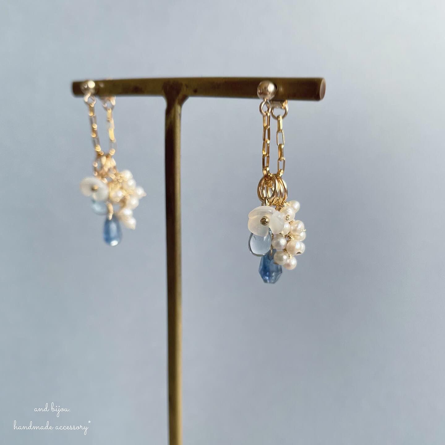 ◆ 素材:14kgf/カイヤナイト・ブルートパーズ・ホワイトシェル・淡水パール