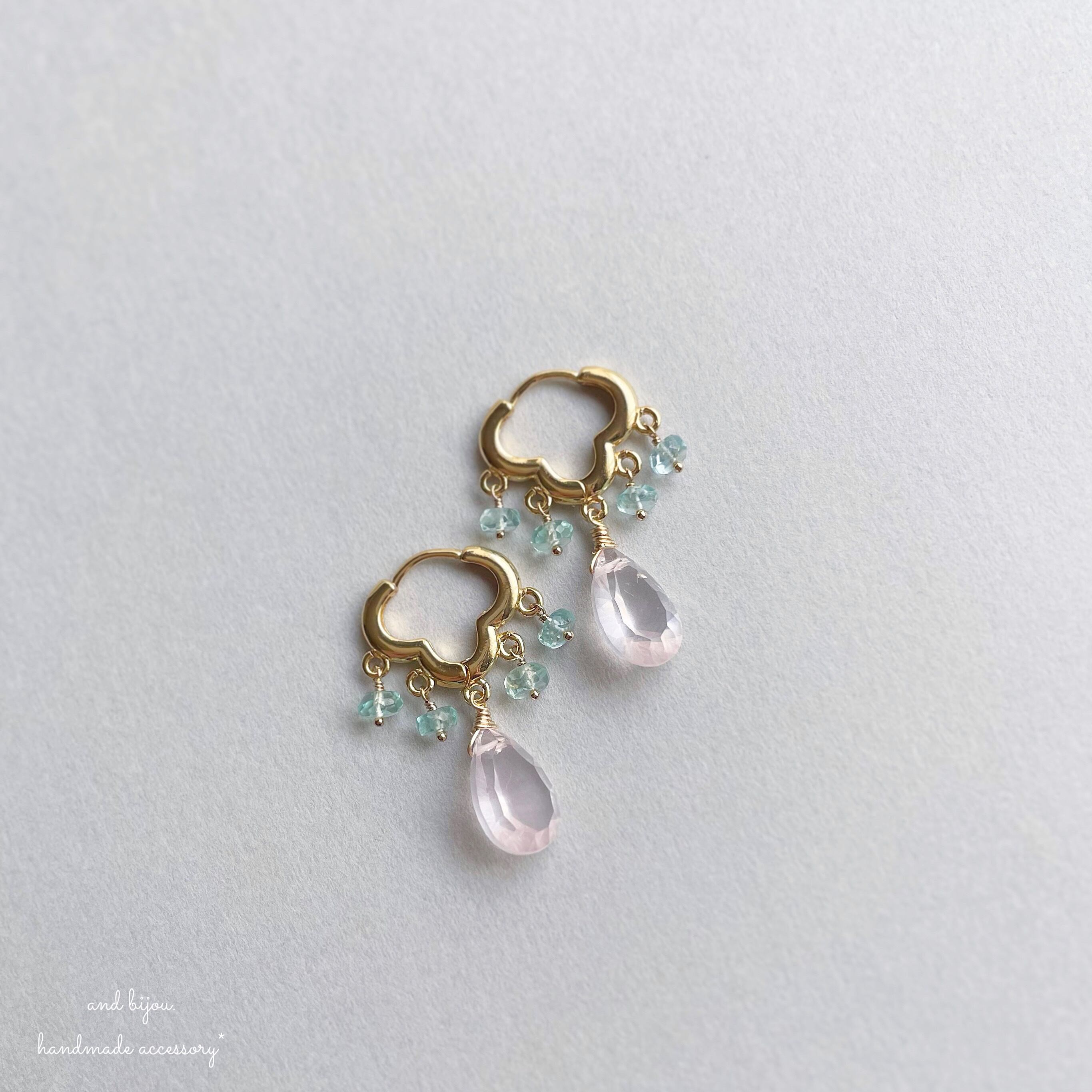 18kgp ローズクォーツ × アパタイト モロッカンピアス