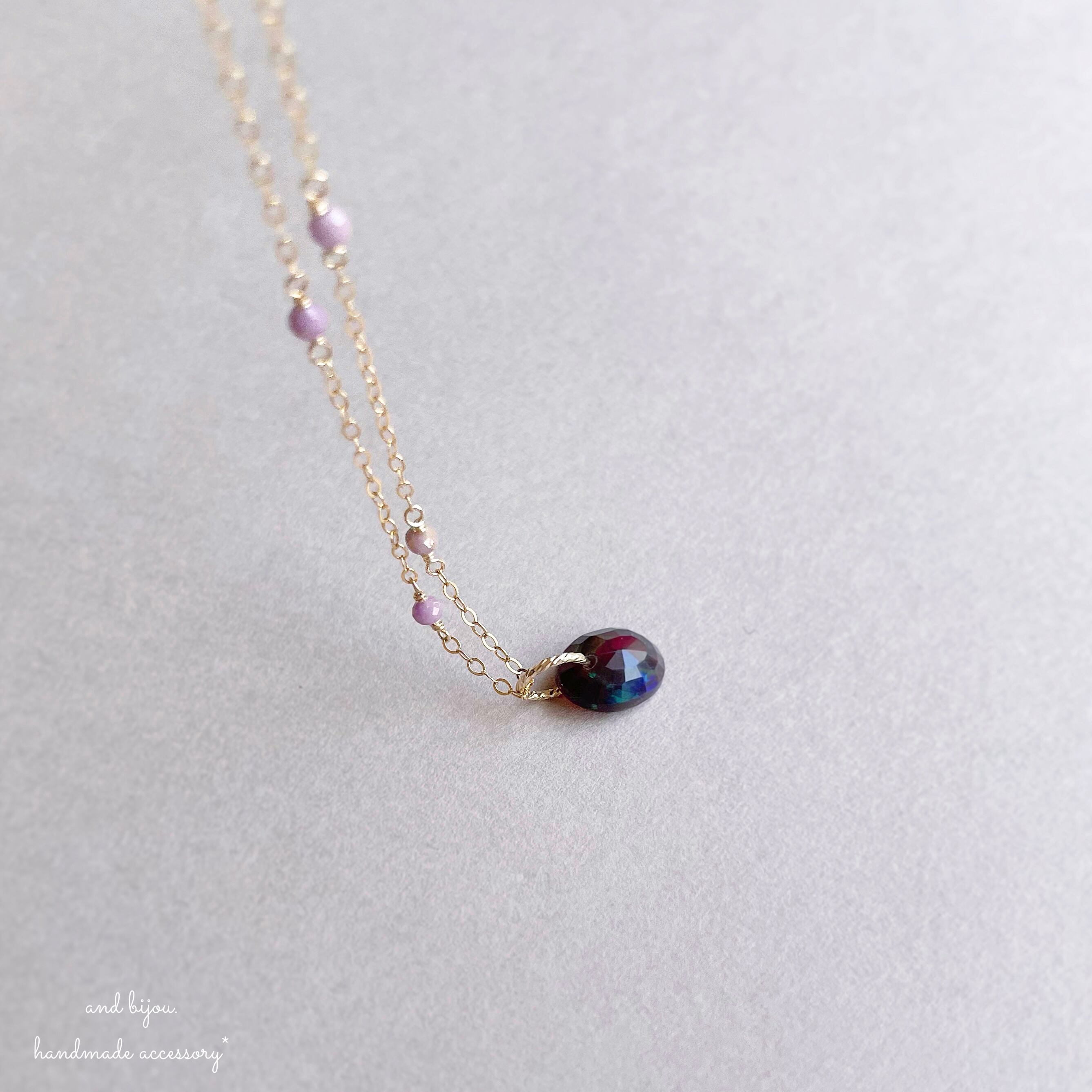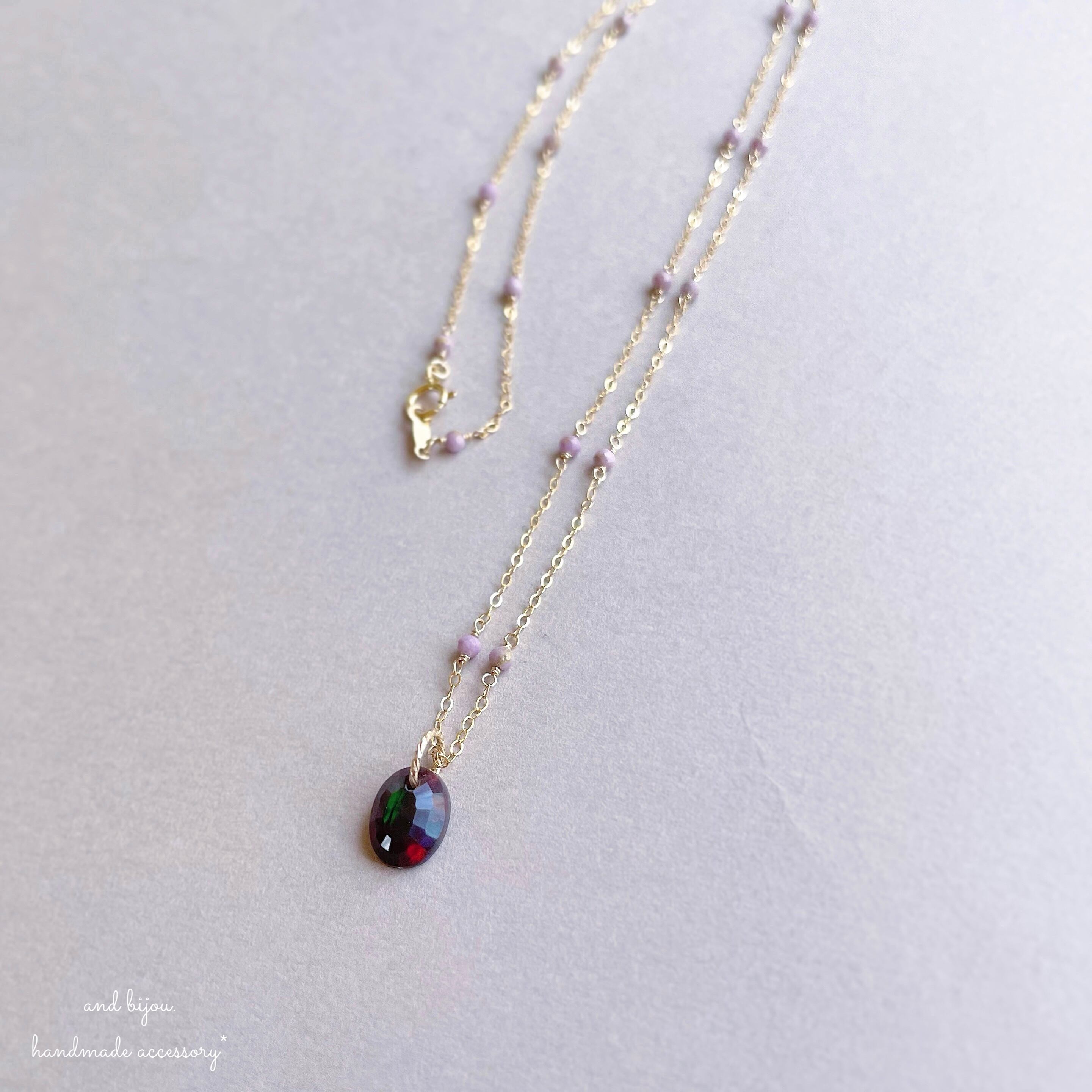 14kgf ブラックオパール × フォスフォシデライト ステーションネックレス