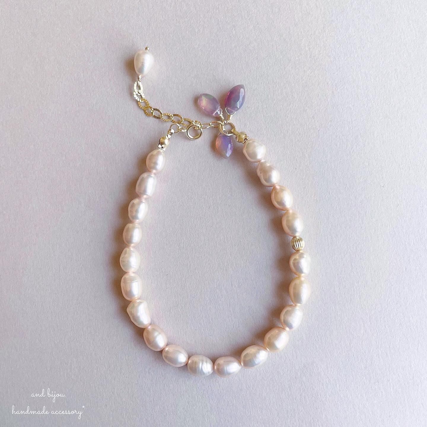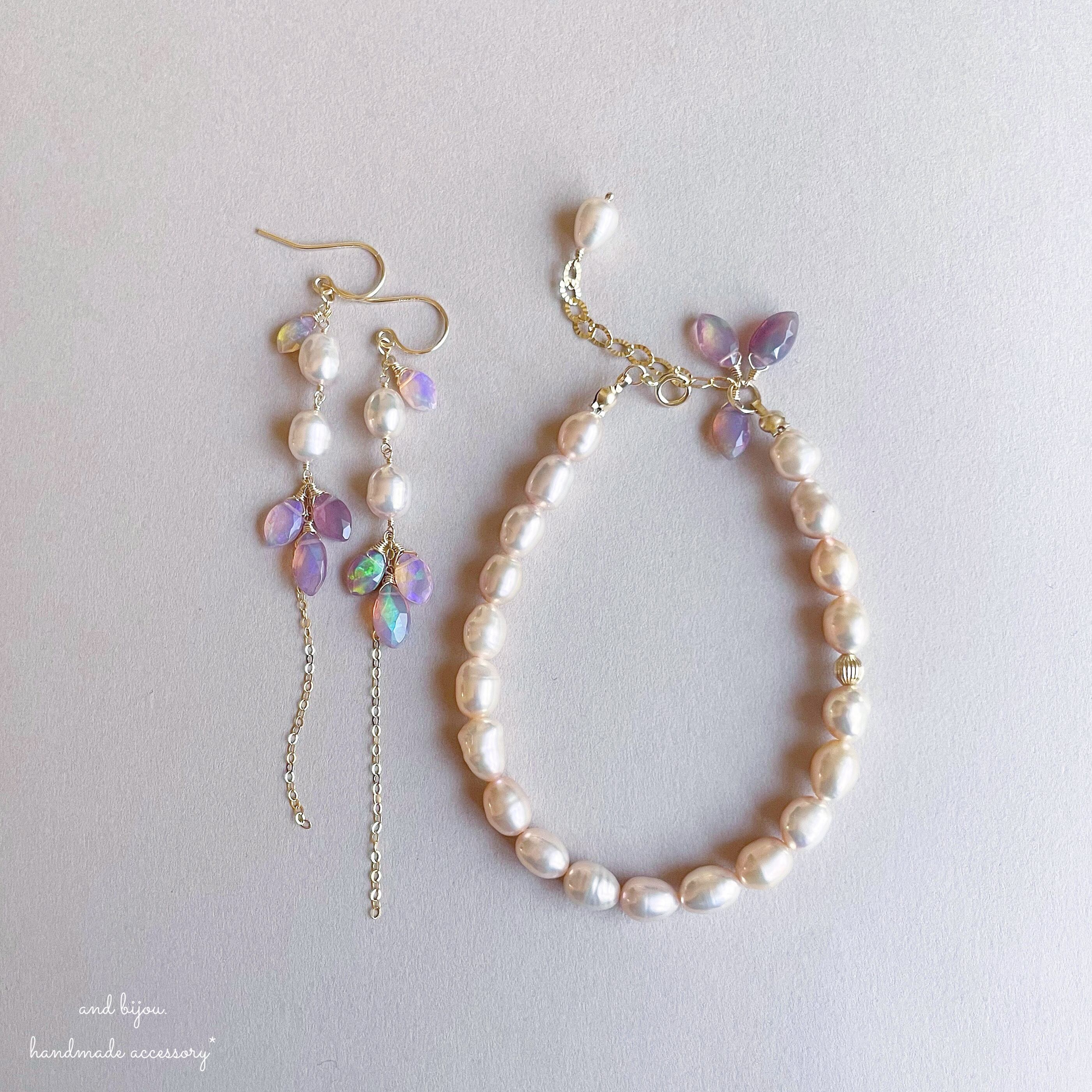 14kgf 淡水パール × カラーオパール フルブレスレット