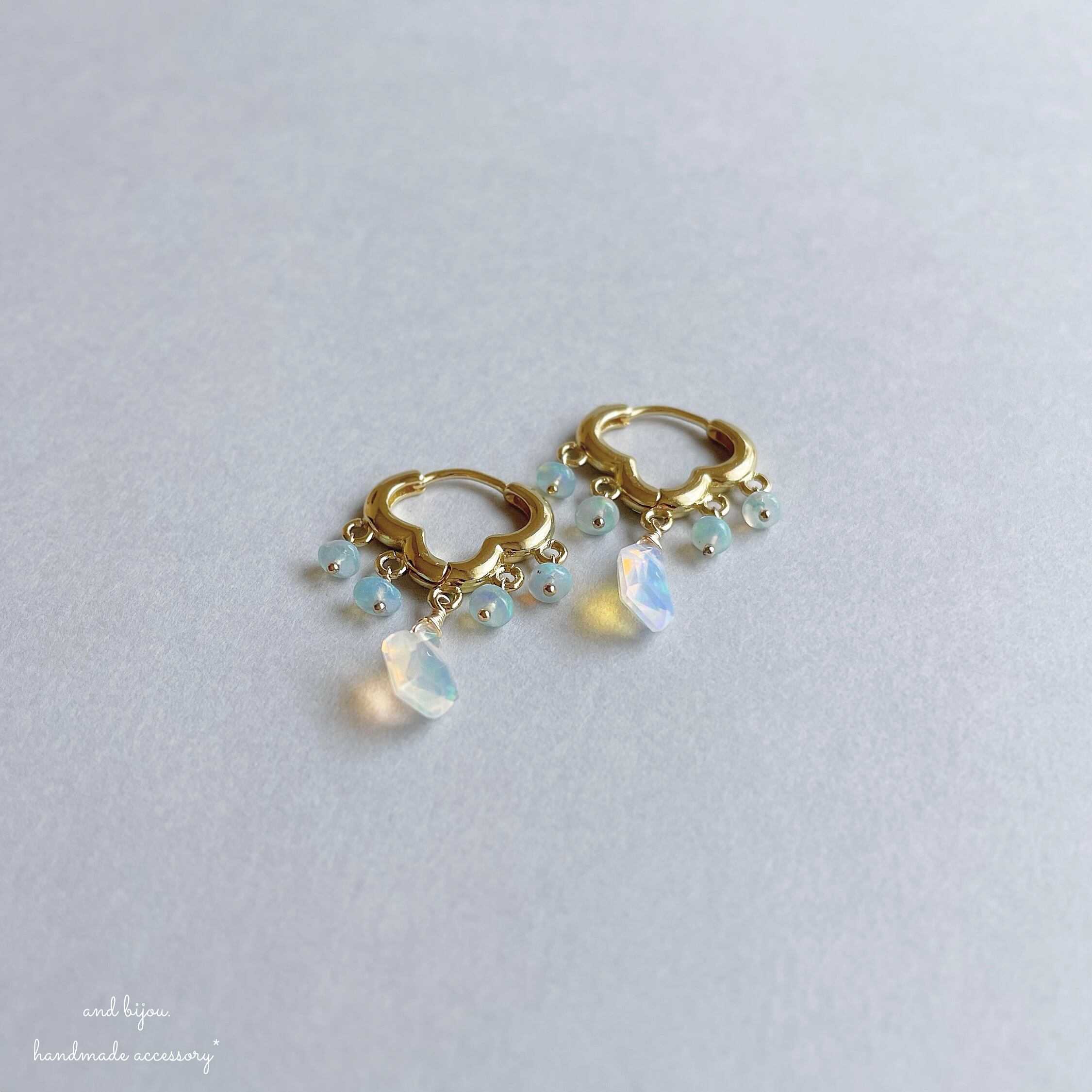 ◆ 素材:ピアス金具 18kgp、他14kgf/オパール・カラーオパール