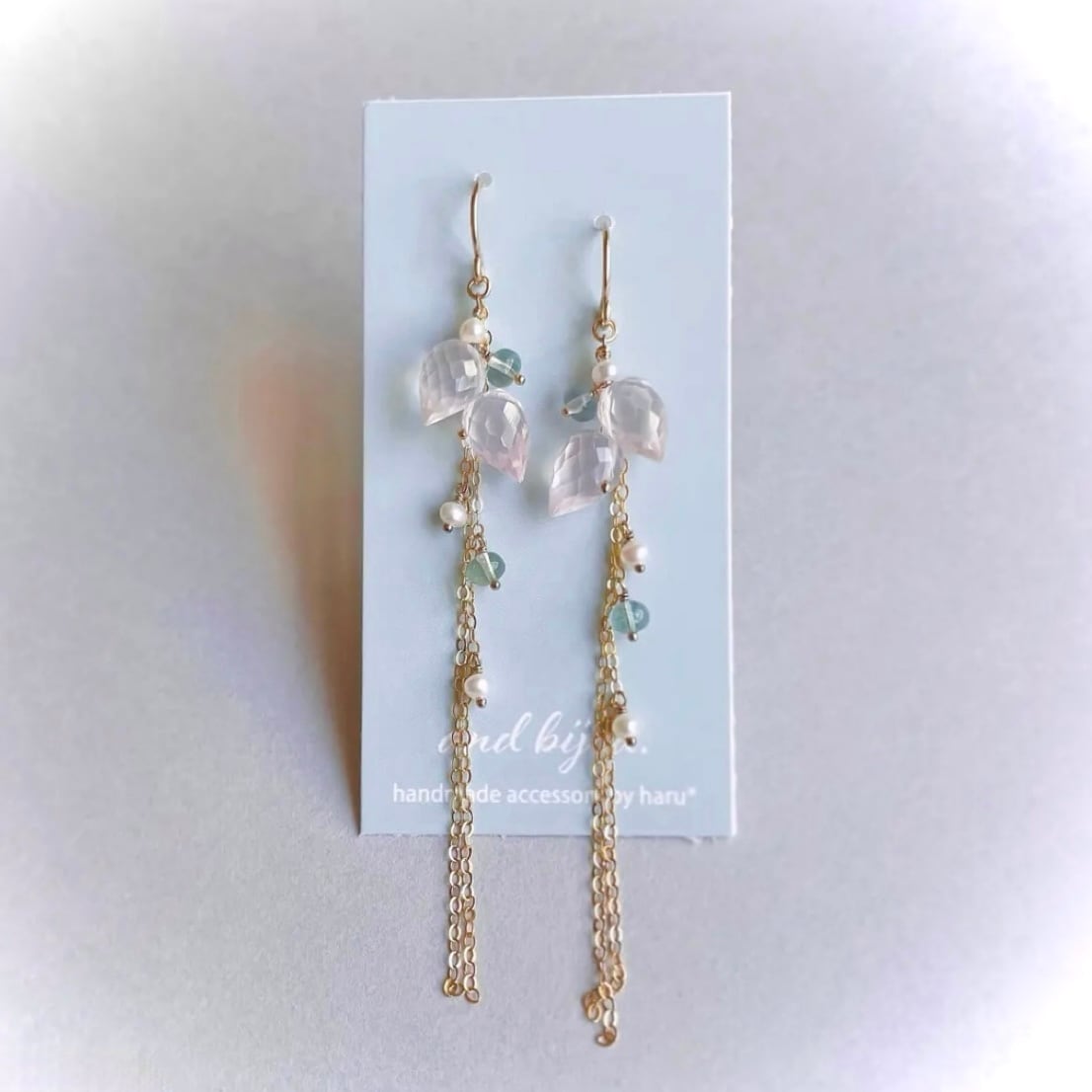 14kgf ローズクォーツ × フローライト つぼみピアス/イヤリング