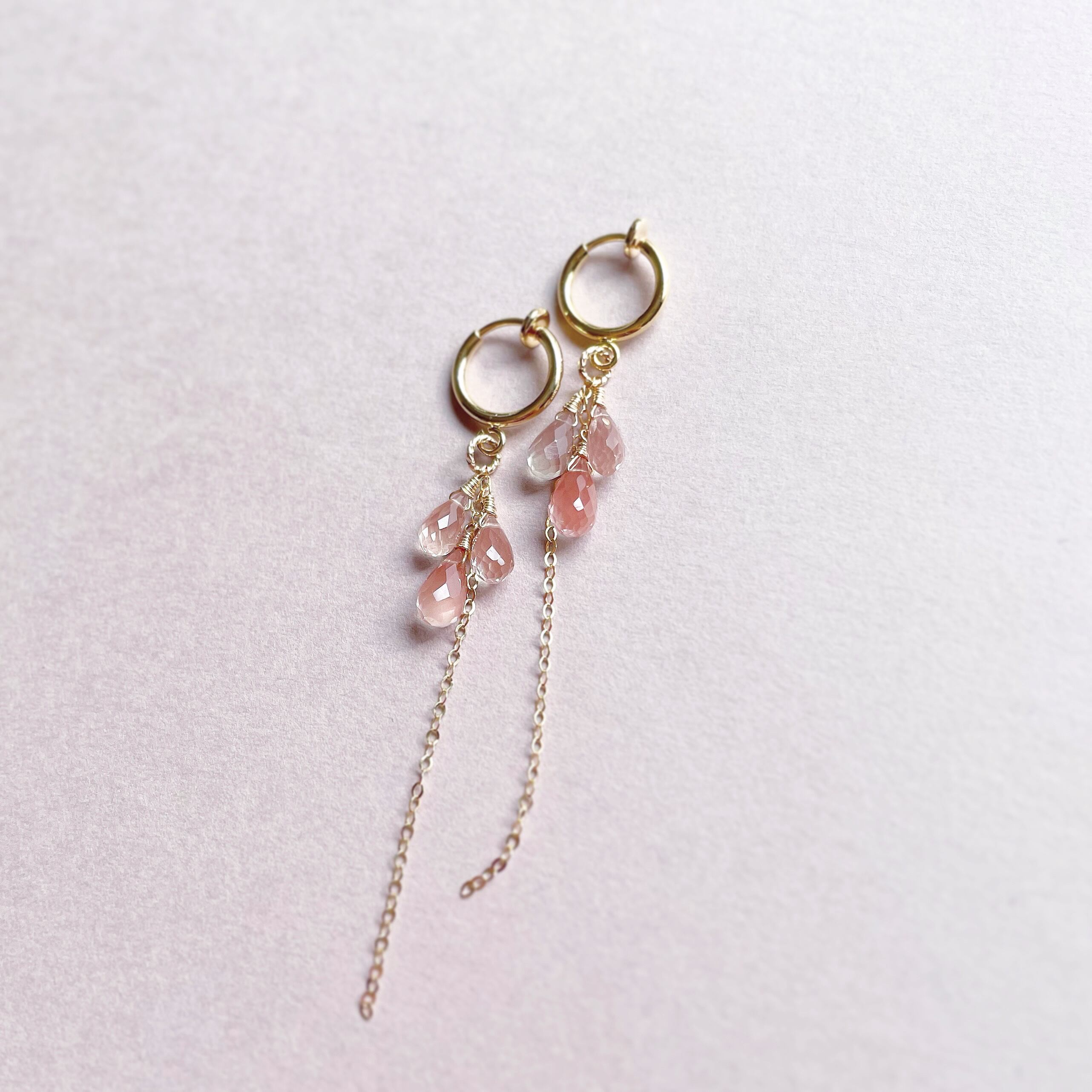 and bijou.では、宝石質やAAA~AA として販売されている石を使用しておりますが、天然が故に欠けやヒビ、内包物が見受けられるものもございます。だからこそ輝き、また 虹が覗く天然石もございます。大きさ、形や色にも1つ1つにございます。天然石の魅力としてご理解お願いいたします。