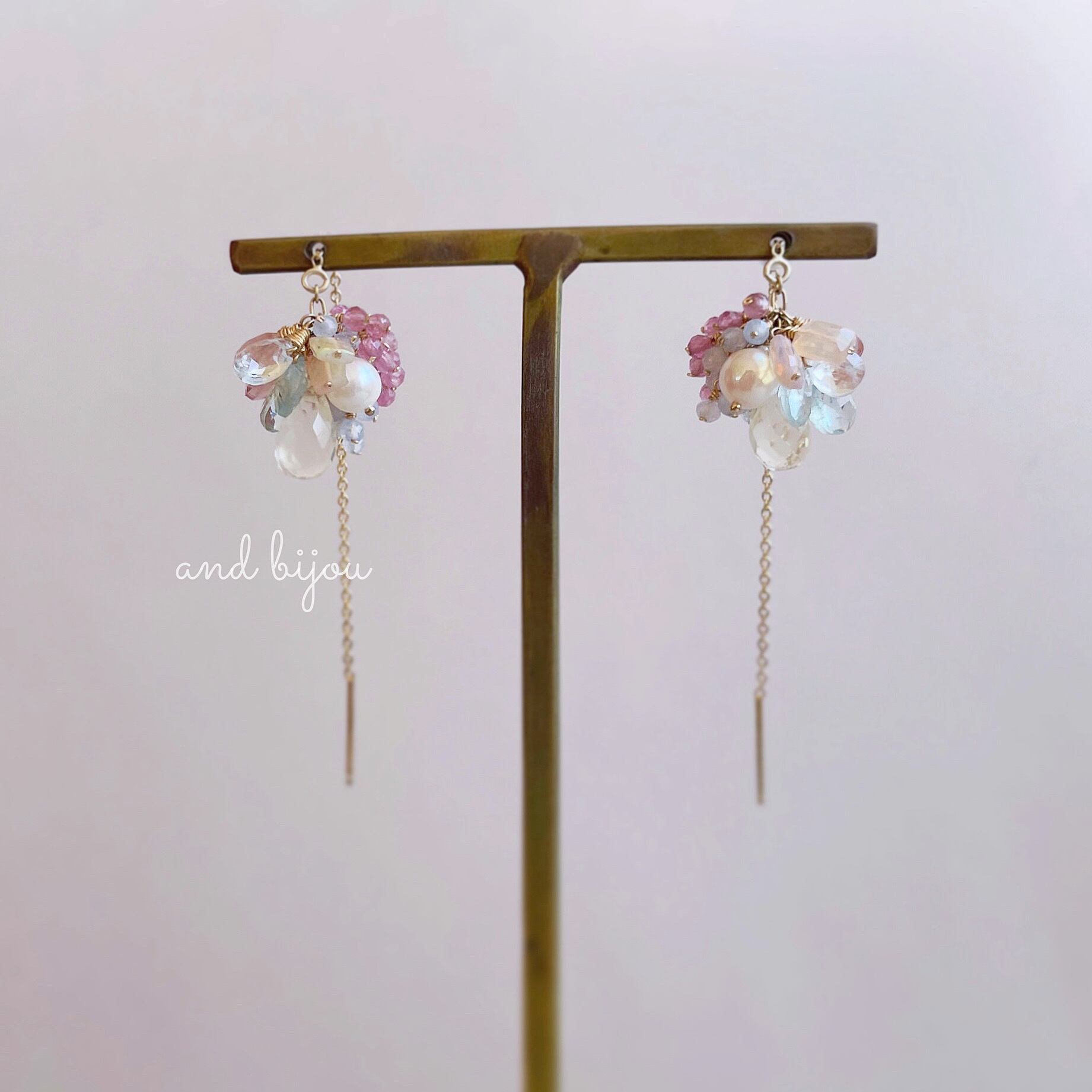 ◆ 素材:14kgf/スキャポライト・アクアマリン・あこや真珠・アンデシン・カラーオパール・カルセドニー・ピンクトルマリン