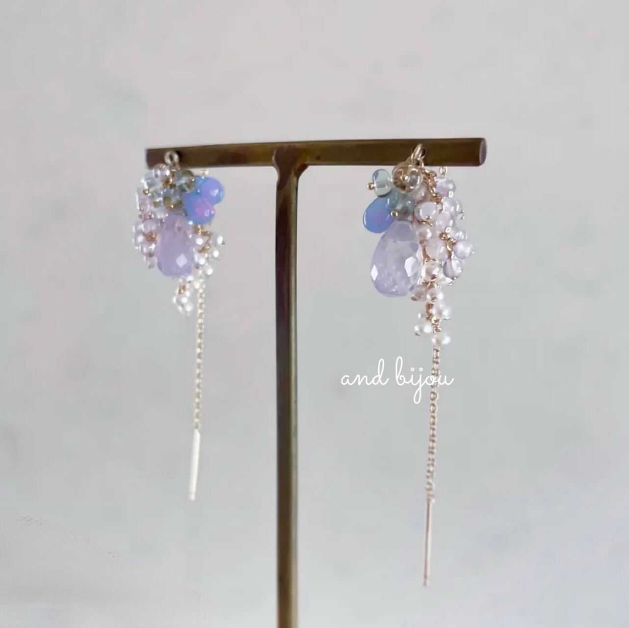 14kgf スコロライト × カラーオパール 紫陽花ブーケピアス/イヤリング