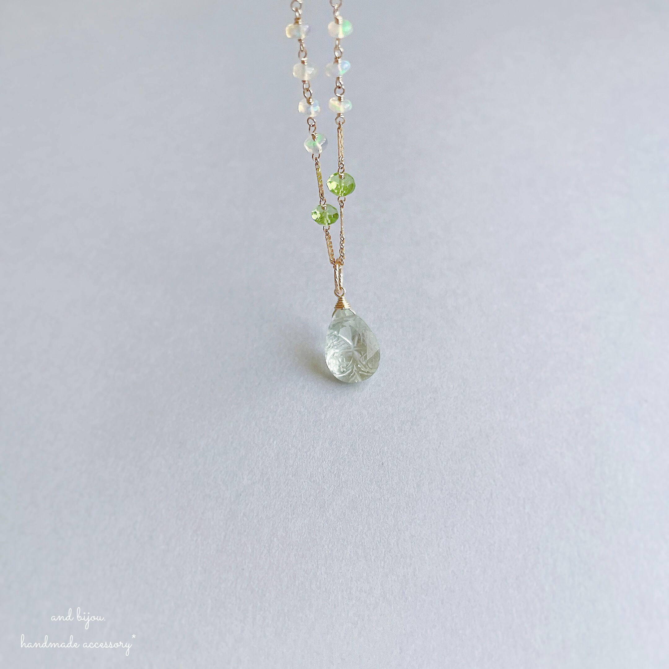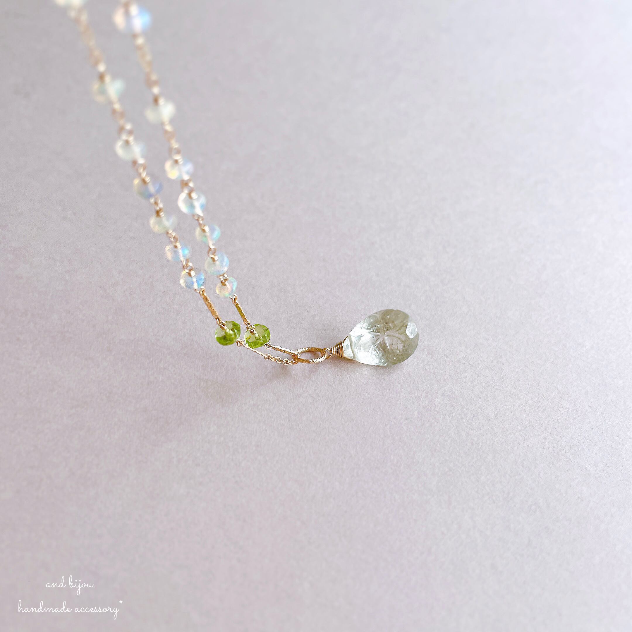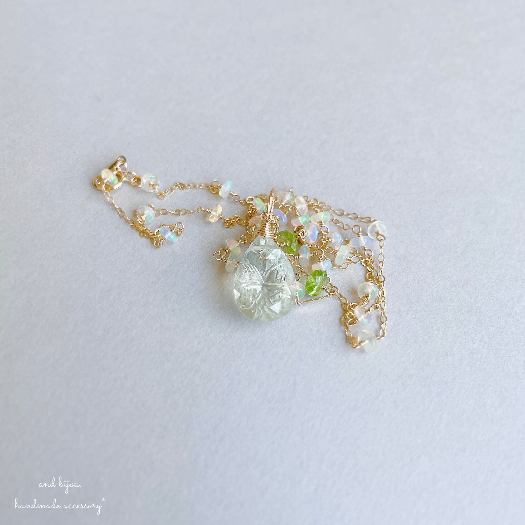 14kgf グリーンアメジスト × オパール × ペリドット ネックレス