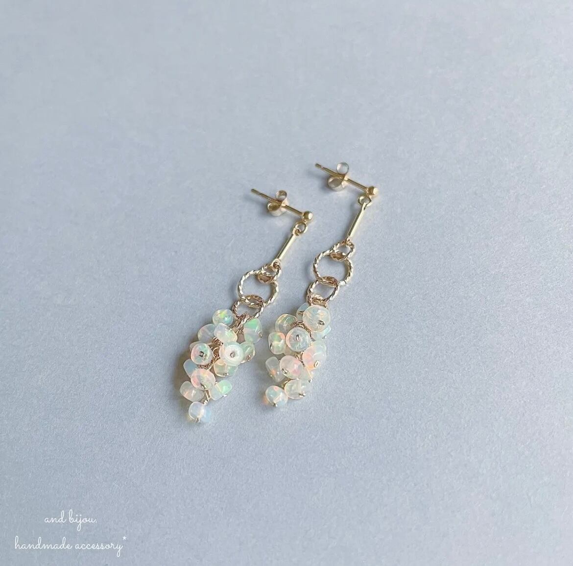 【受注制作】14kgf オパール ミディピアス/イヤリング