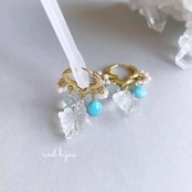 ◆ 素材:ピアス金具18kgp、他14kgf/淡水パール・スリーピングビューティーターコイズ・クリスタル(水晶)・フローライト・白珊瑚