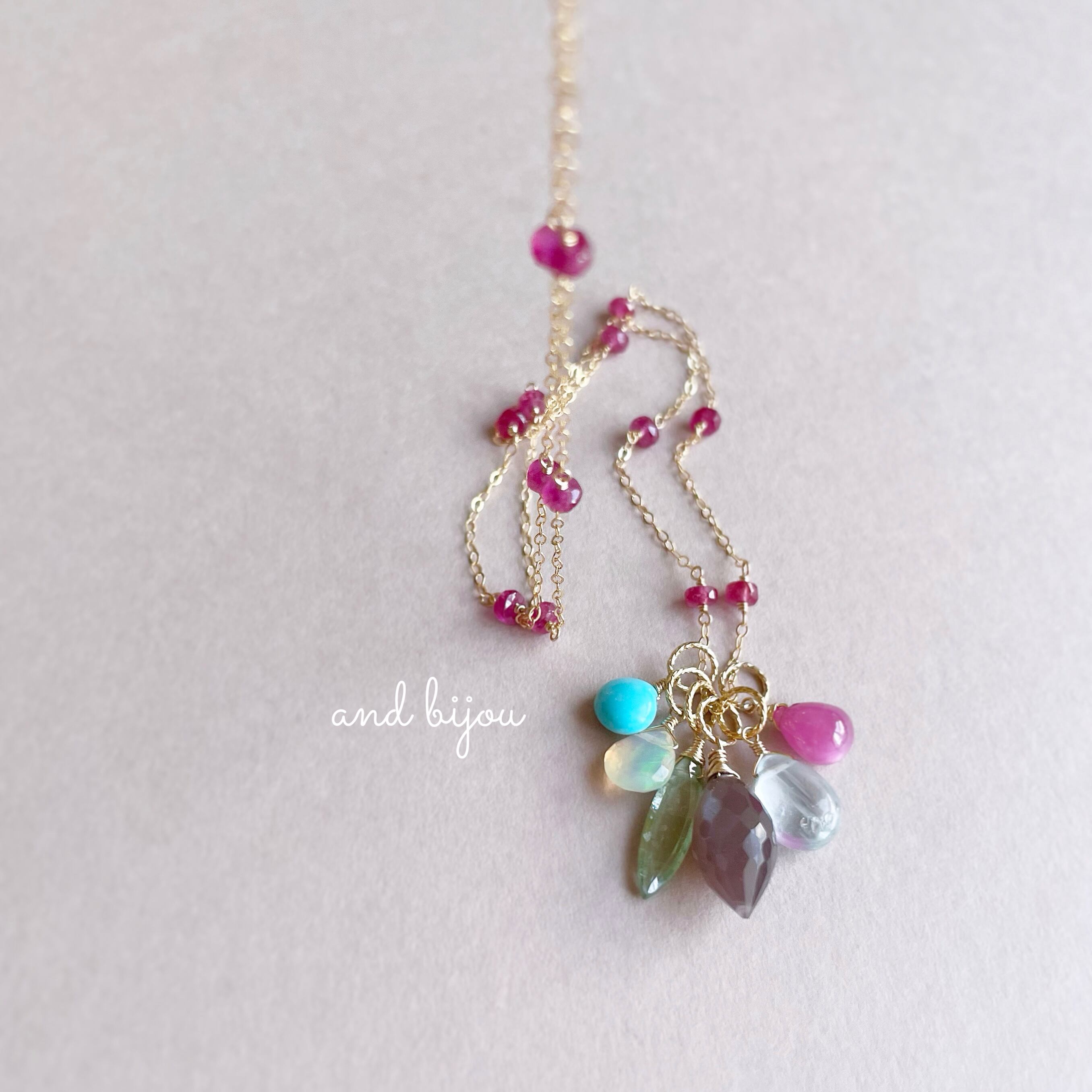 ◆ 素材:14kgf/ルビー・オパール・グリーンカイヤナイト・スリーピングビューティーターコイズ・アクアマリン・チョコレートムーンストーン・スタールビー