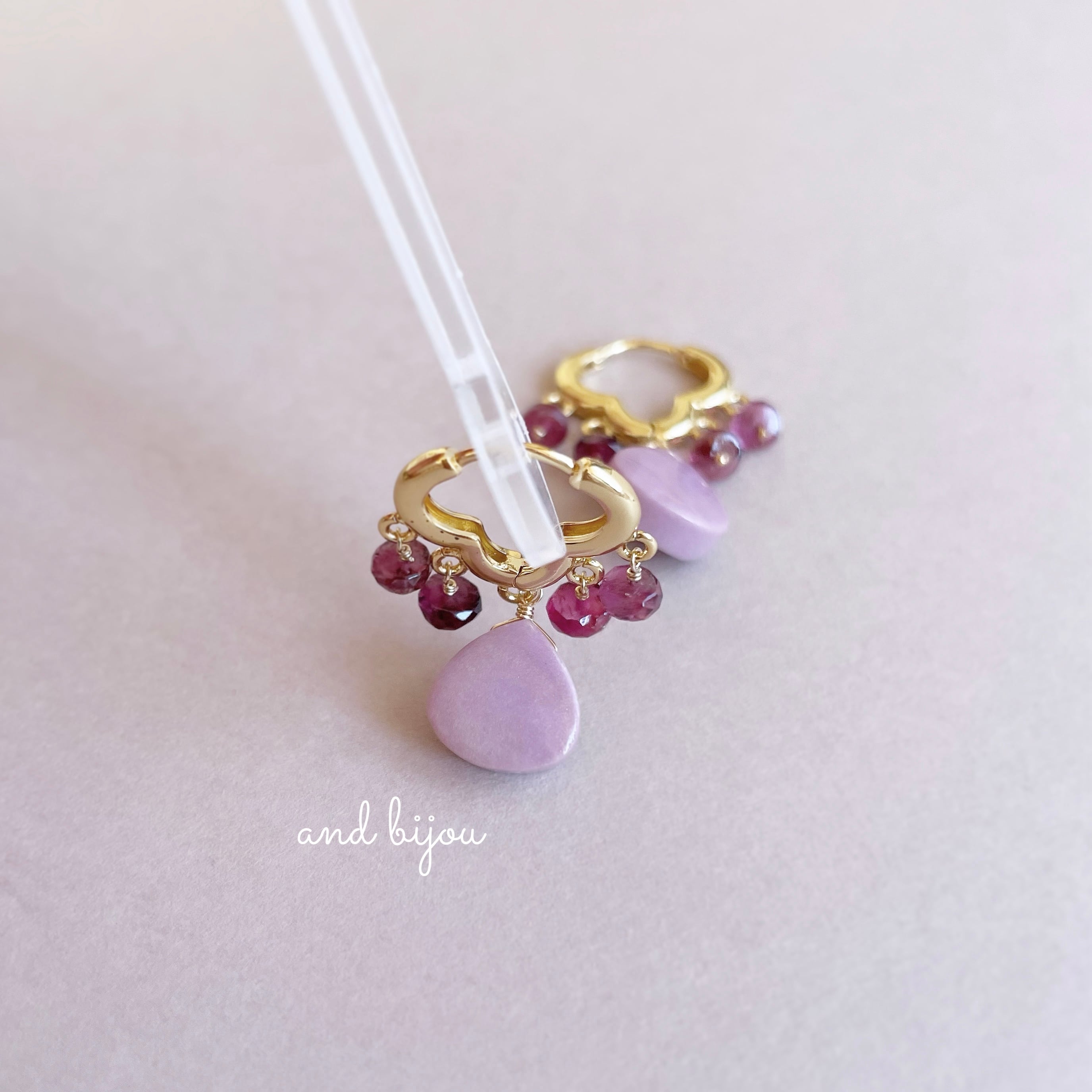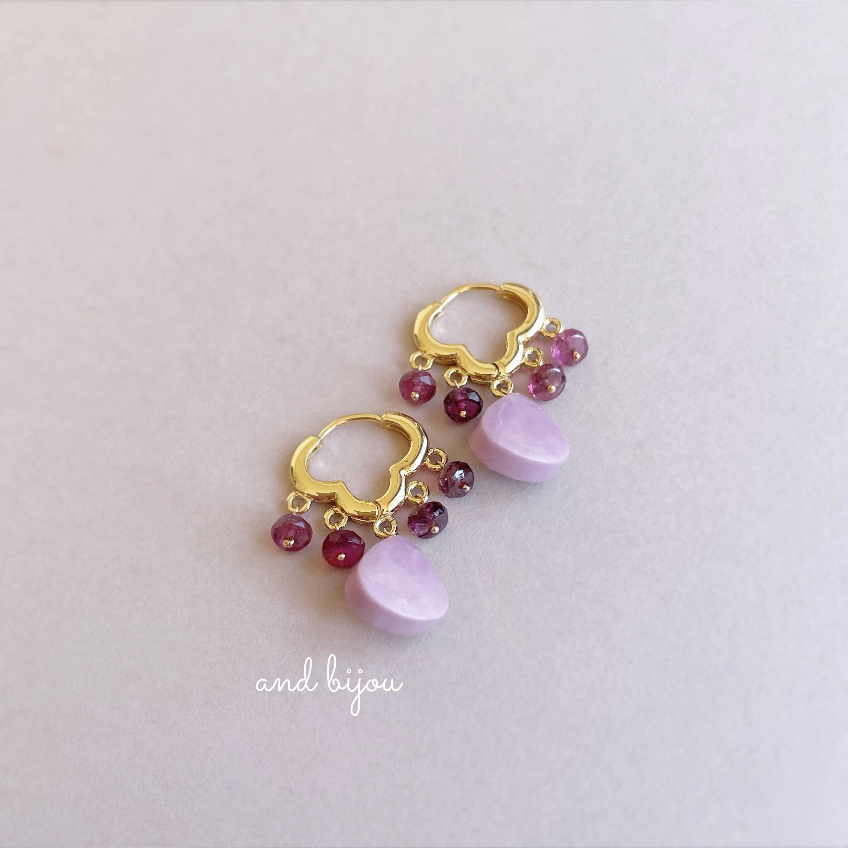 and bijou.では、宝石質やAAA~AA として販売されている石を使用しておりますが、天然が故に欠けやヒビ、内包物が見受けられるものもございます。だからこそ輝き、また 虹が覗く天然石もございます。大きさ、形や色にも1つ1つにございます。天然石の魅力としてご理解お願いいたします。