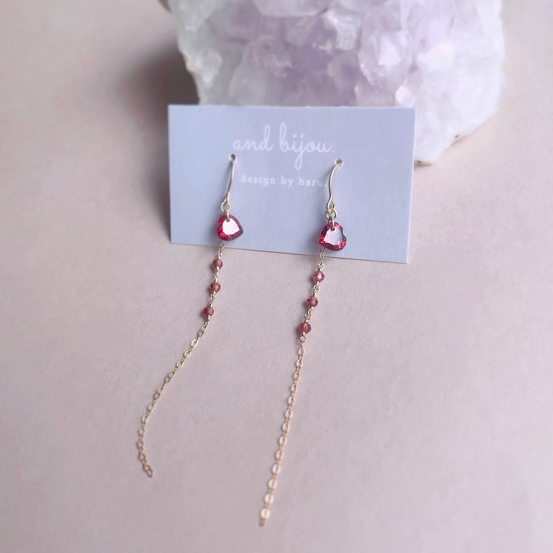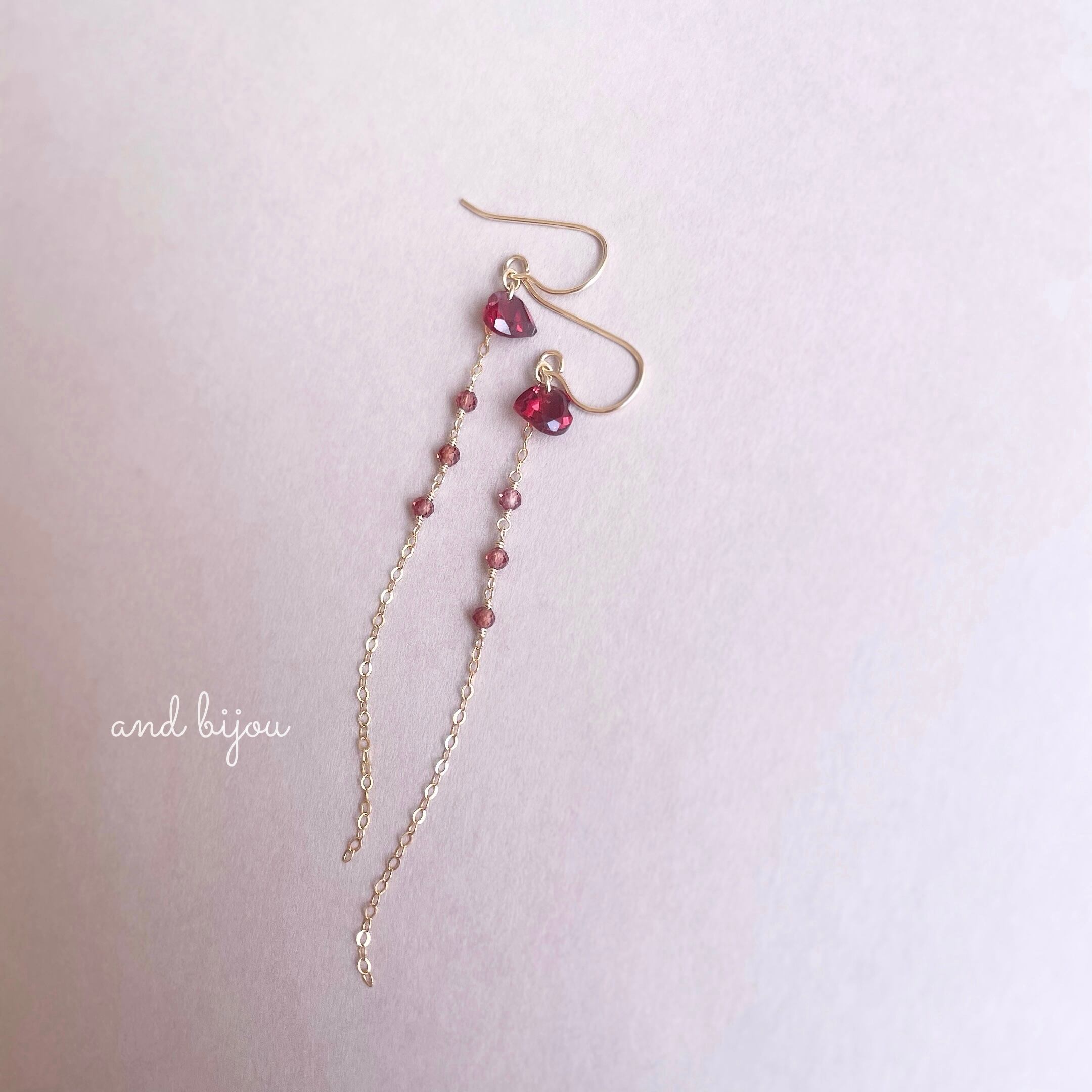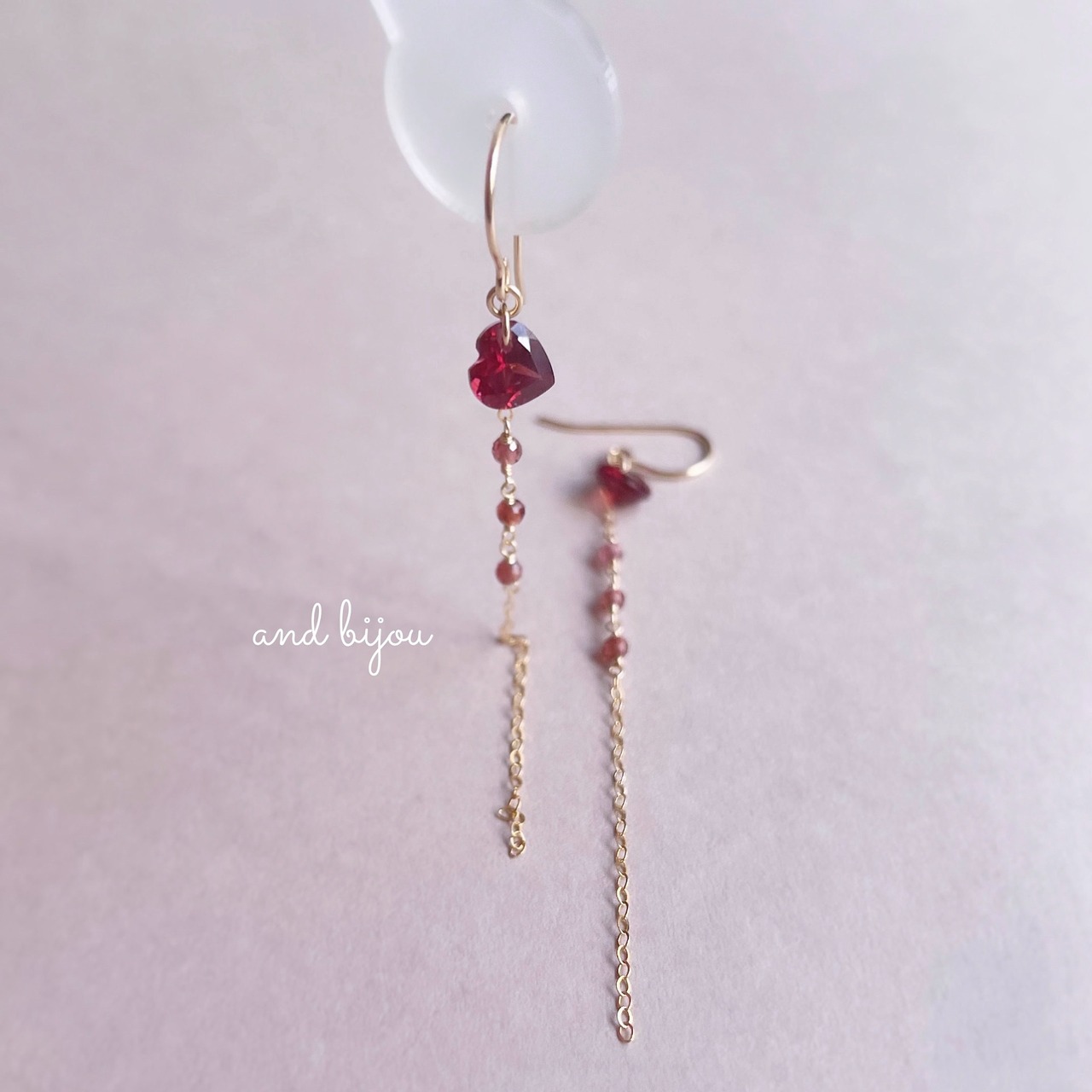 14kgf モザンビークガーネット ハートシェイプカット ピアス/イヤリング